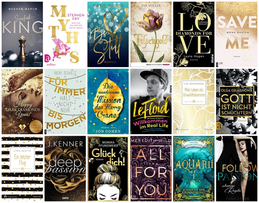 Vor allen unter Liebesromanen und Ratgebern war goldenes Konfetti der absolute Renner. Ich bin mir sicher, dass dieser Trend auch 2019 weiterhin bestehen wird.